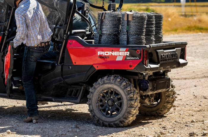 Welcome to the side-by-side everybody’s been waiting for: the Honda Pioneer 1000-6 Deluxe Crew. It’s the side-by-side built for the biggest jobs, because it lets you carry the biggest payloads – six passengers along with a full-size tilt bed, over 1100 kilos of towing capacity, under seat storage, and much more.